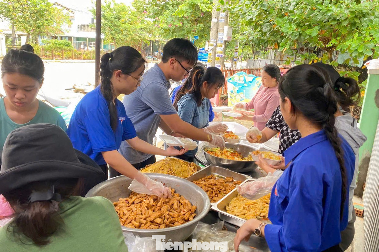 Những ngày nước lớn bủa vây các khu dân cư trên địa bàn phường Điện Bàn Đông (TP Đà Nẵng), để hỗ trợ người dân, Đoàn phường Điện Bàn Đông đã nhanh chóng phối hợp với các CLB thiện nguyện triển khai bếp cơm thanh niên, nấu những bữa ăn nóng hổi cho người dân bị ngập lụt. Ảnh: G.T