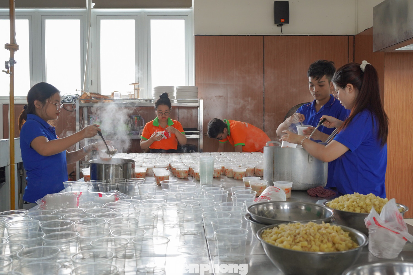 Hàng chục tình nguyện viên hăng hái tham gia phụ giúp. Những bếp cơm dã chiến được tổ chức, mượn tạm trường học, nhà dân... Các đoàn viên thanh niên chia nhau phụ giúp các khâu, từ sơ chế, đến nấu nướng, đóng gói và vận chuyển đến các khu dân cư.