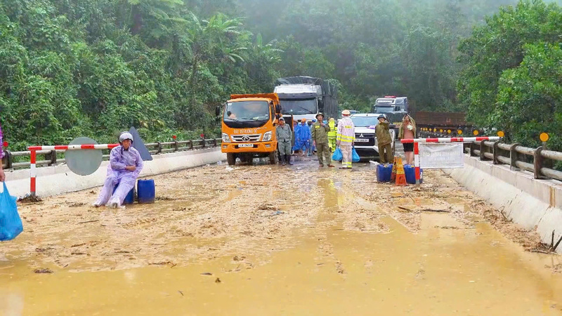Lực lượng CSGT Ngọc Hồi cùng các thành viên Tổ SOS đã vượt qua đoạn sạt lở dài hơn 200m, nhiều chỗ bùn lún đến ngang bụng, mang theo bánh mì, mì ăn liền, lương khô, sữa và nước uống tiếp tế cho những người đang mắc kẹt. Dù trời vẫn mưa nặng hạt và nguy cơ sạt lở tiếp tục cao, đoàn tiếp tế vẫn nỗ lực tiếp cận khu vực an toàn để hỗ trợ kịp thời.