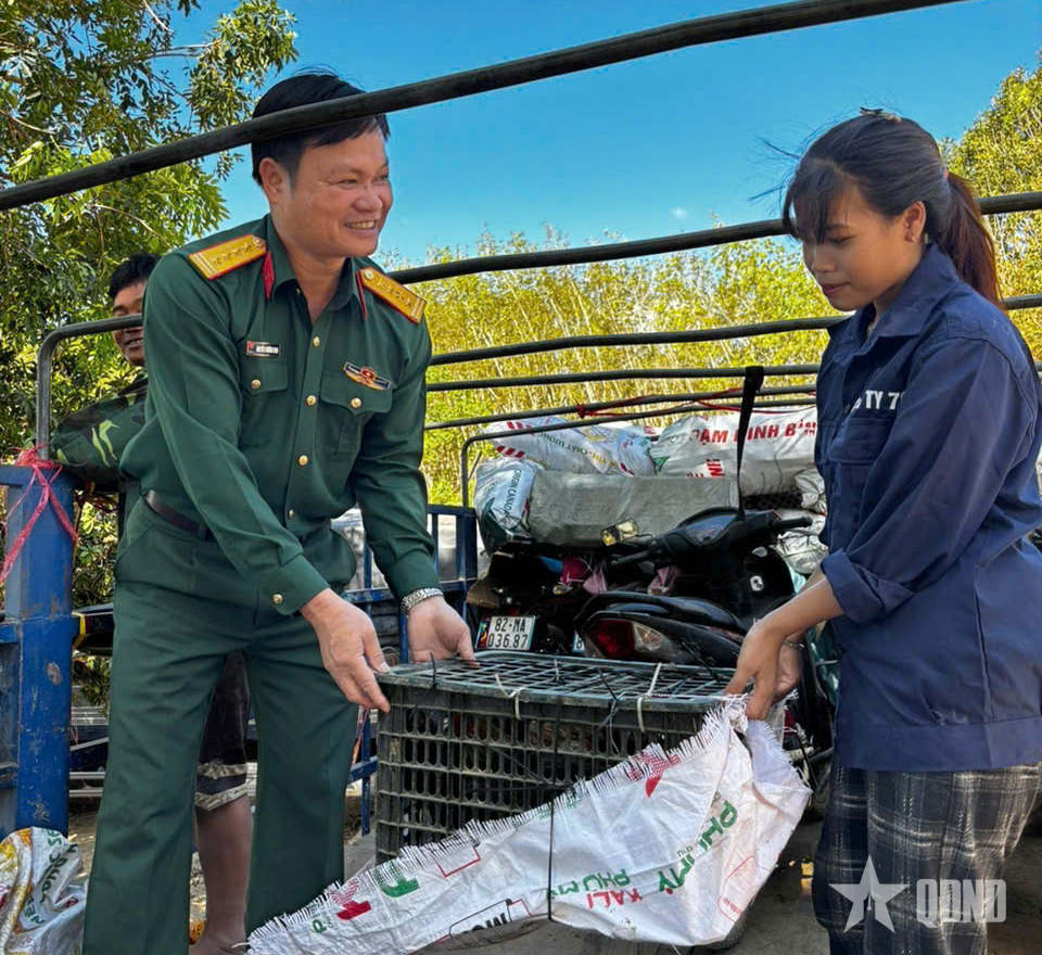 Đại tá Nguyễn Trường Vinh, Đoàn trưởng Đoàn Kinh tế - Quốc phòng 78 hỗ trợ người lao động đưa hành lý lên xe.