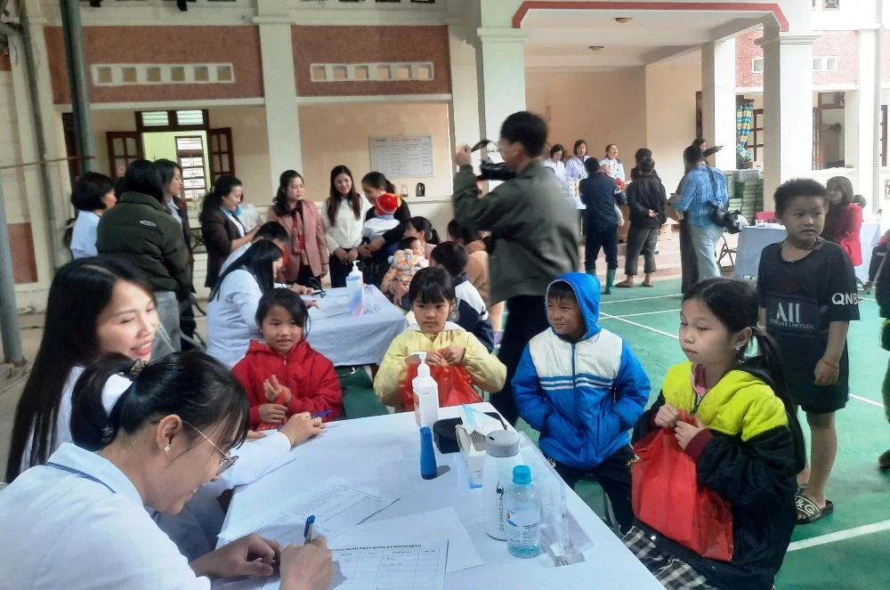 Nhiều trẻ em là con em hội viên vùng biên được các bác sĩ Bệnh viện Nhi Thanh Hóa tư vấn, khám sàng lọc bệnh và phát thuốc miễn phí.
