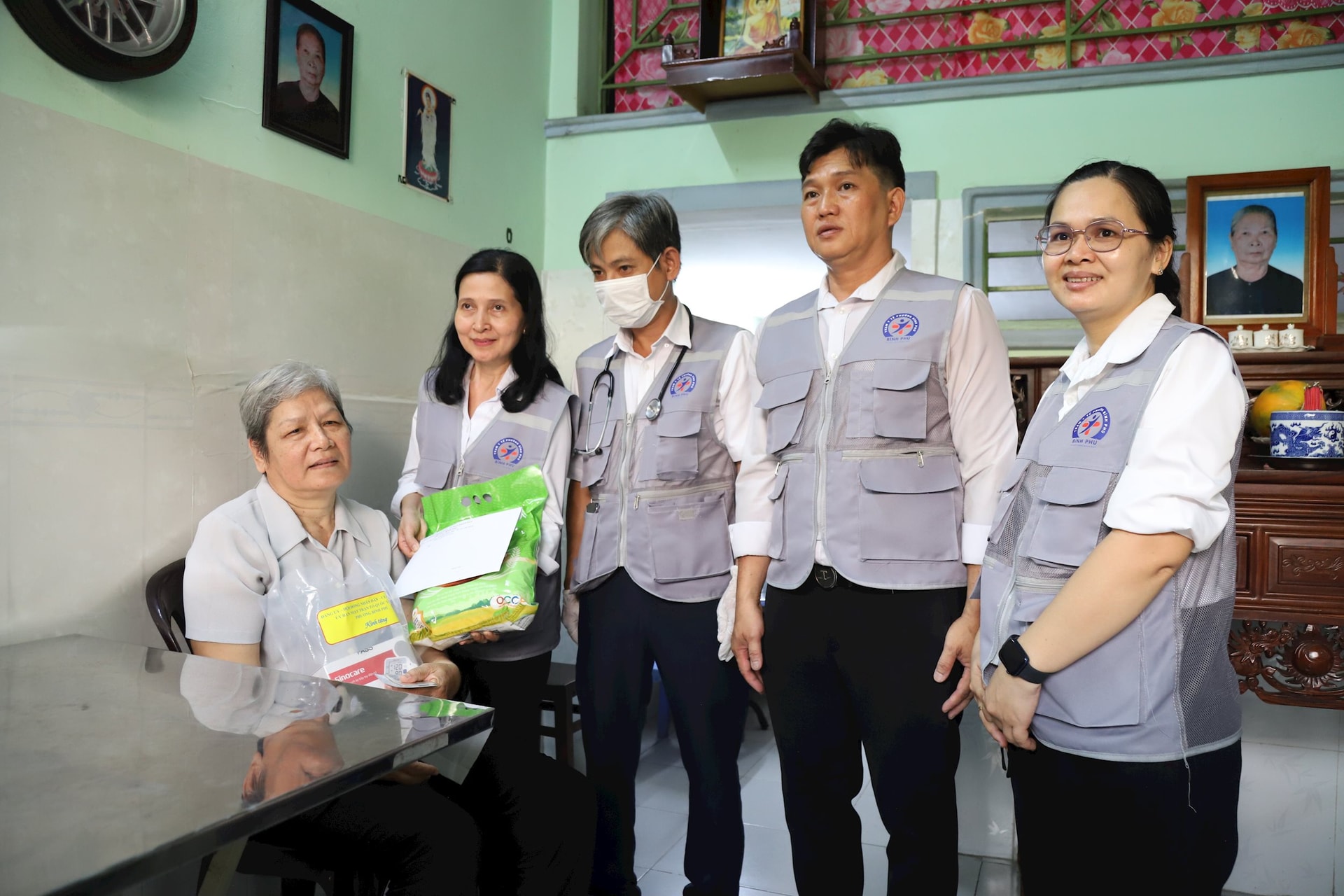 Đội ngũ y tế tại phường Bình Phú đã đến tận nơi thăm khám cho các trường hợp đặc biệt.