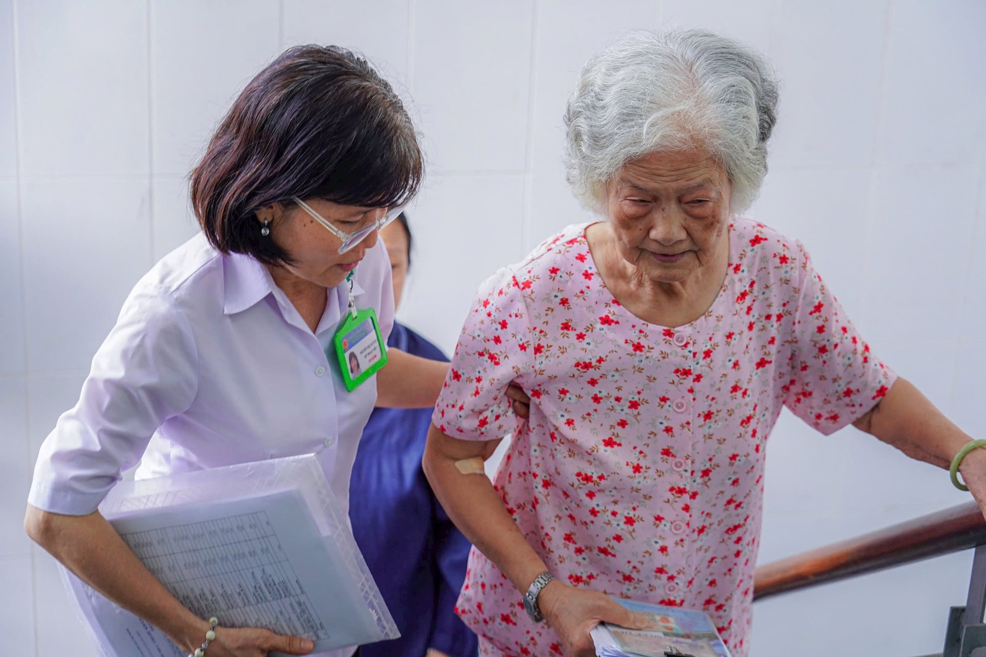 Người cao tuổi được hỗ trợ tận tình khi đi khám sức khỏe.