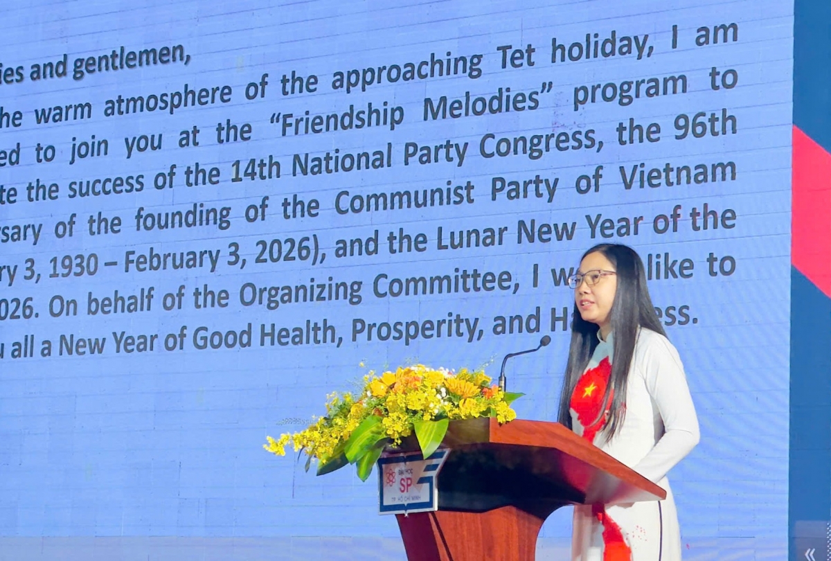 Phát biểu khai mạc, bà Hà Thanh, Chủ tịch Liên hiệp các tổ chức hữu nghị TP.HCM nhấn mạnh, Đại hội đại biểu toàn quốc lần thứ XIV của Đảng là sự kiện chính trị trọng đại, đánh dấu bước phát triển mới của đất nước, đưa Việt Nam bước vào kỷ nguyên vươn mình của dân tộc.