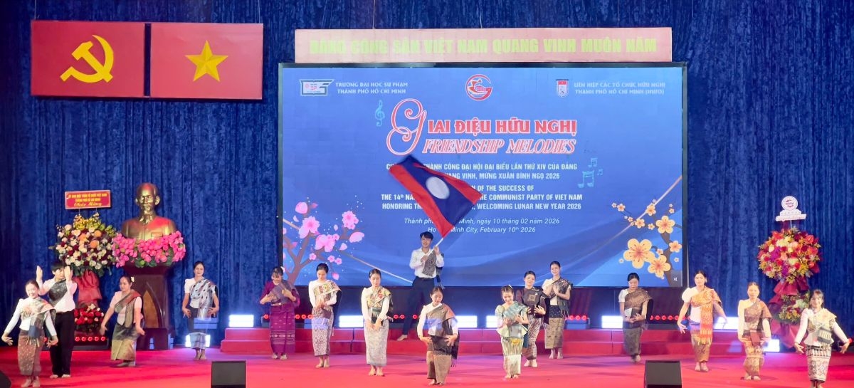 Bên cạnh đó, chương trình còn có các tiết mục biểu diễn của sinh viên Lào đang học tập tại TP; ca khúc “Đất mẹ” do giáo viên Olesia Kondratova, Trường Phổ thông Vietsopetro thể hiện; các điệu múa truyền thống đến từ Hàn Quốc, Trung Quốc, Ấn Độ, Bungary; trình diễn trang phục Yukata Nhật Bản do Trường Đại học Văn hóa TP.HCM thực hiện; cùng tiết mục hát múa mừng xuân của Trường Đại học Sư phạm TP.