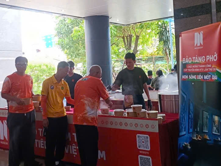 Những tô phở nóng hổi được trao tận tay các tay đua như một lời động viên, tiếp sức tinh thần, đồng thời thể hiện sự trân trọng đối với nỗ lực bền bỉ, ý chí vượt khó của các vận động viên.
