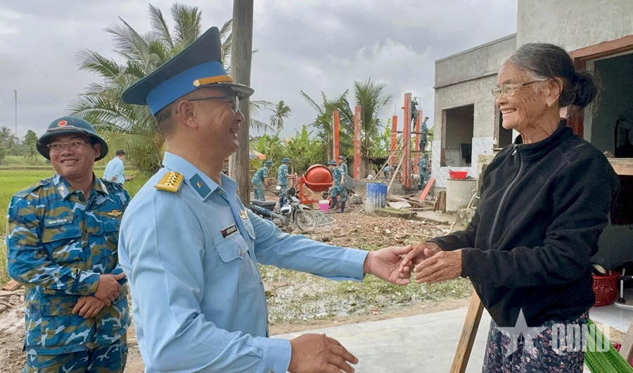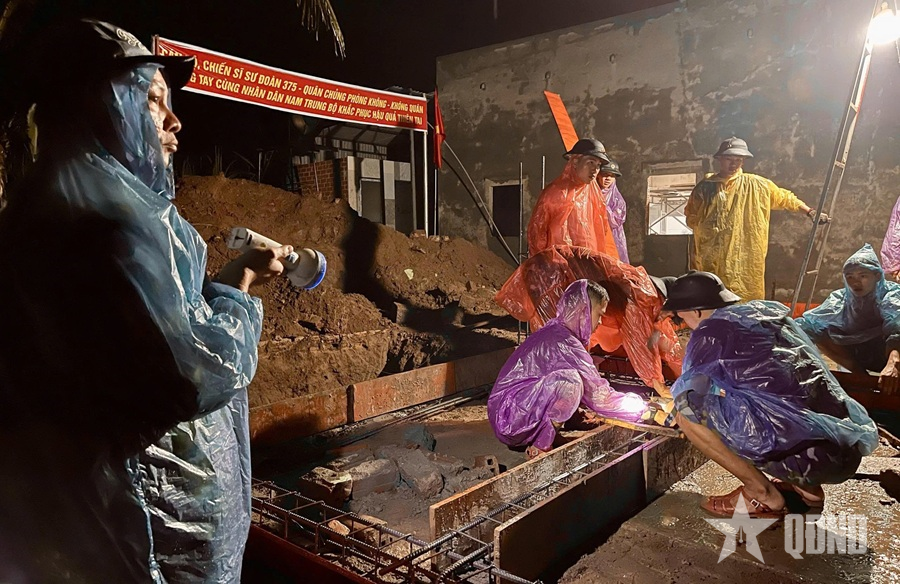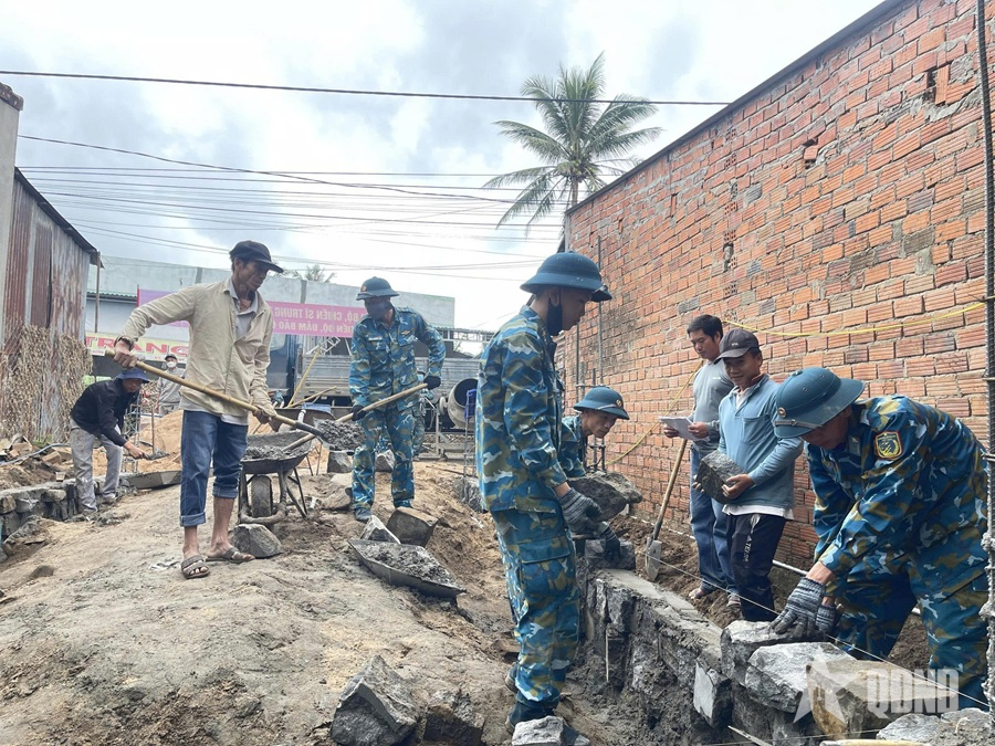 Bộ đội giúp gia đình ông Nguyễn Thanh Đồng ở thôn Tây Hòa, xã Sơn Hòa xây móng nhà.