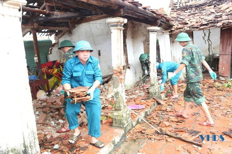 Ngay sau bão dữ, lực lượng vũ trang Ban Chỉ huy Phòng thủ khu vực 2 - Hà Trung đã có mặt kịp thời ở thôn Vĩnh Gia 1, phối hợp với cấp ủy, chính quyền, lực lượng dân quân tự vệ địa phương, các tổ chức đoàn thể, cán bộ... giúp người dân khắc phục hậu quả mưa bão.