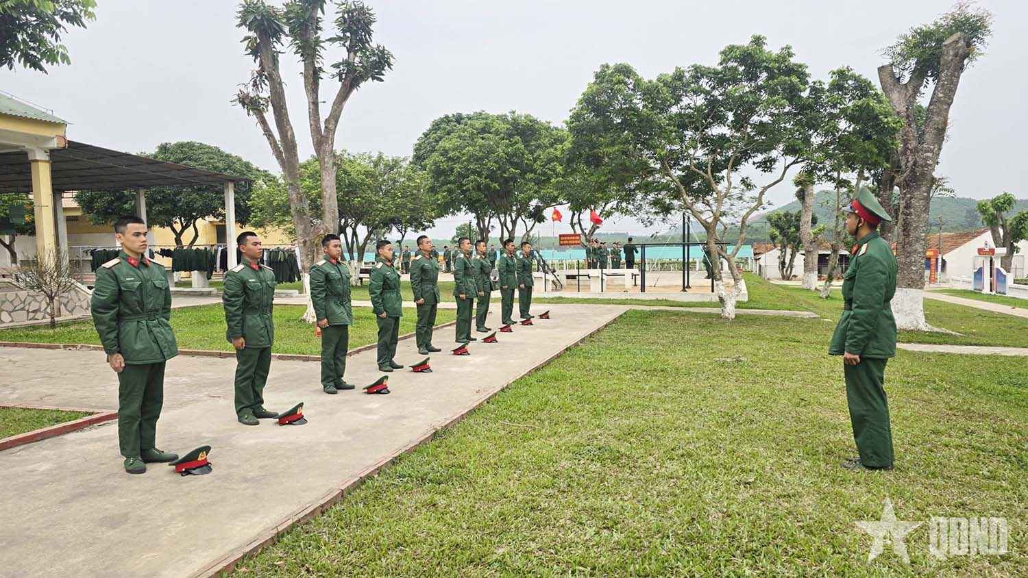 Chiến sĩ mới huấn luyện điều lệnh đội ngũ.