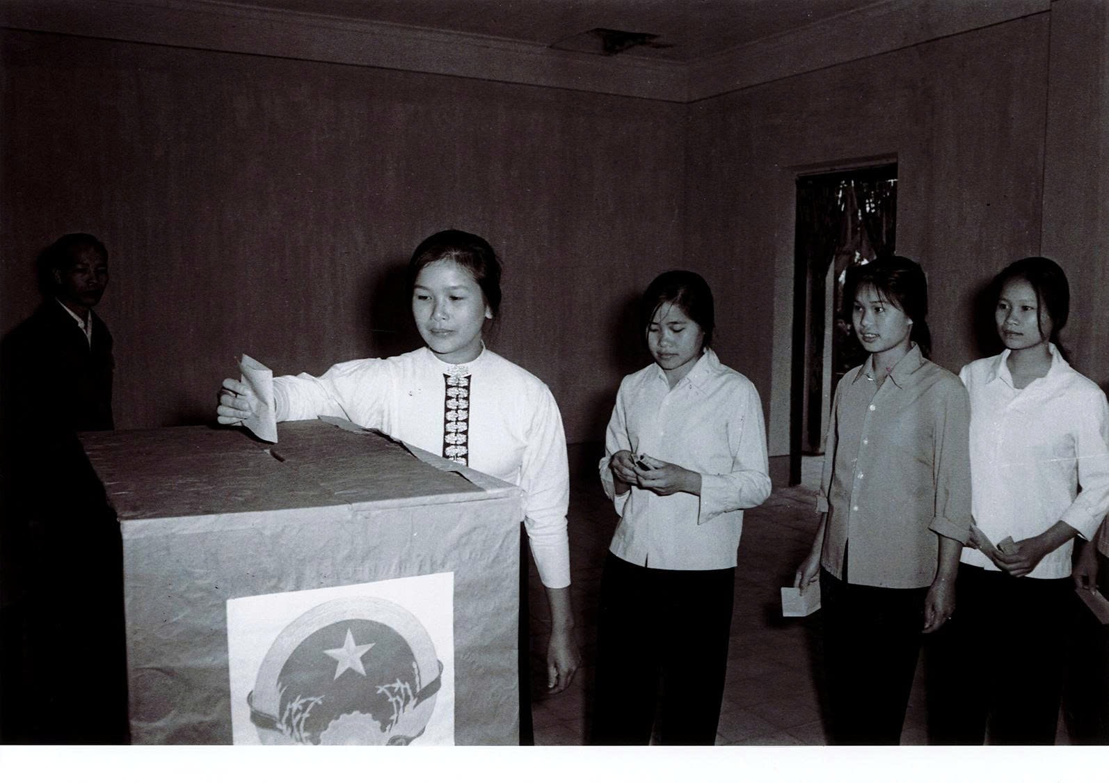 Sinh viên trường Đại học Nông nghiệp 3 (Bắc Thái) bầu cửa đại biểu quốc hội khóa VI, ngày 25/4/1976