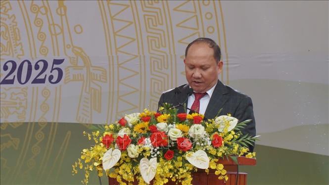 Đồng chí Rah Lan Chung, Phó Bí thư Thường trực Tỉnh ủy, Chủ tịch HĐND tỉnh Gia Lai, phát biểu tại buổi lễ.