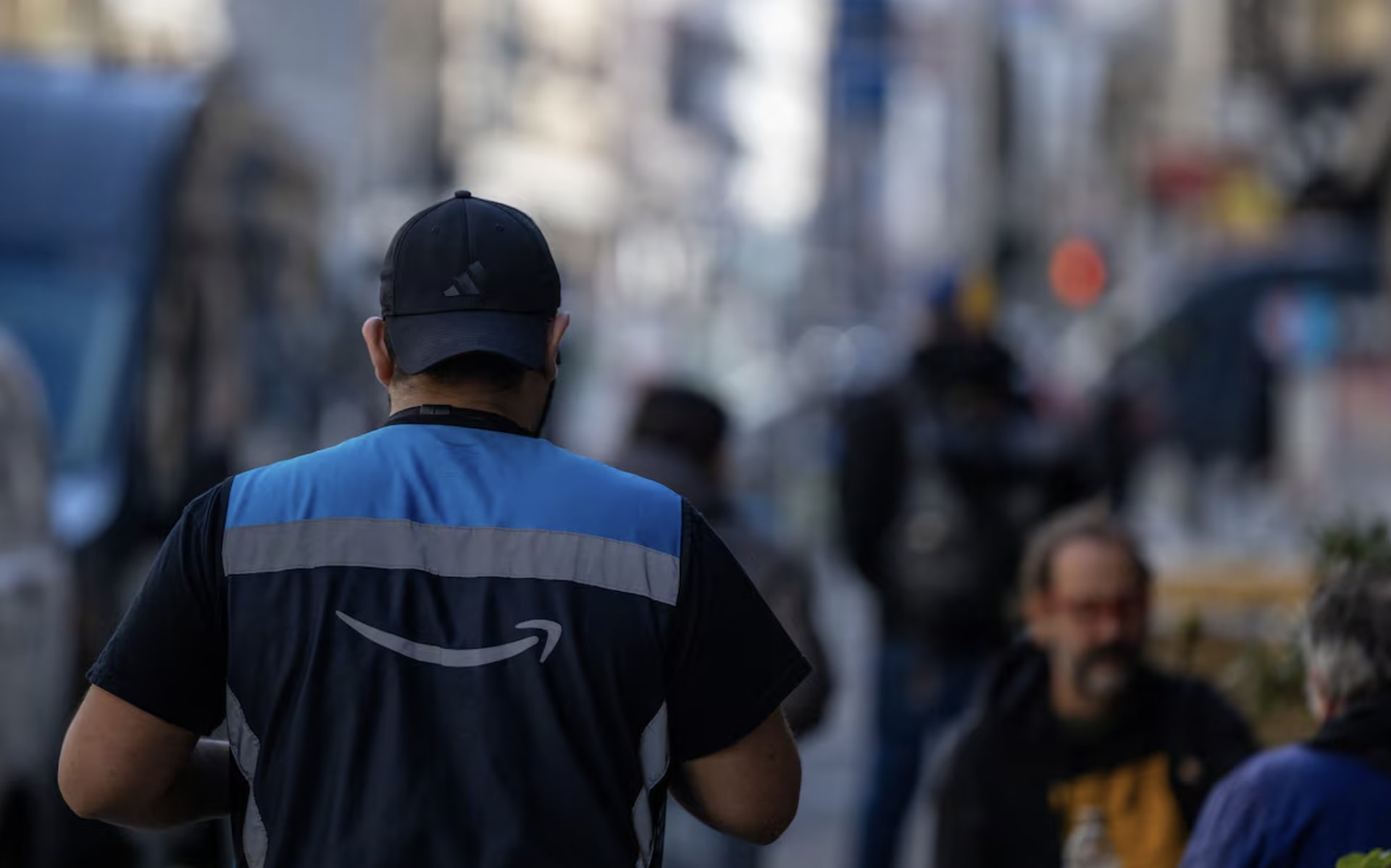 Một nhân viên Amazon giao hàng tại trung tâm thành phố San Francisco, bang California, Mỹ - Ảnh: Reuters