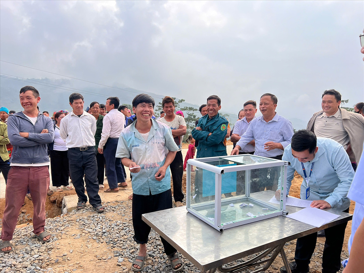 Người dân vui mừng bốc thăm nhận nhà tại khu tái định cư Sàng Ma Sáo (Ảnh: Trọng Bảo)