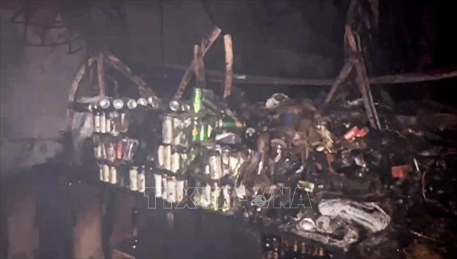 Hiện trường vụ cháy hộp đêm tại Arpora, Ấn Độ, ngày 7-12-2025. Ảnh: ANI/TTXVN