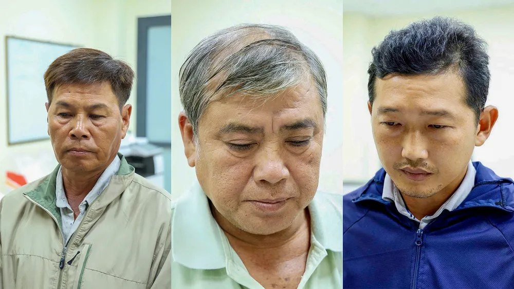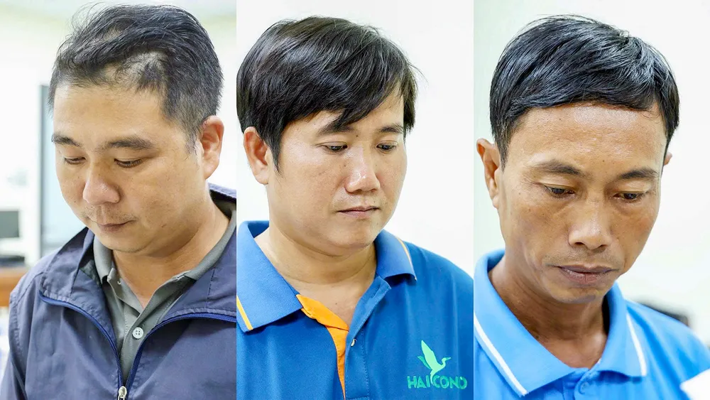 Từ trái qua: Các bị can Nguyễn Ngọc Linh, Nguyễn Phước Tự và Trương Anh Tuấn tại cơ quan Công an. Ảnh: TT