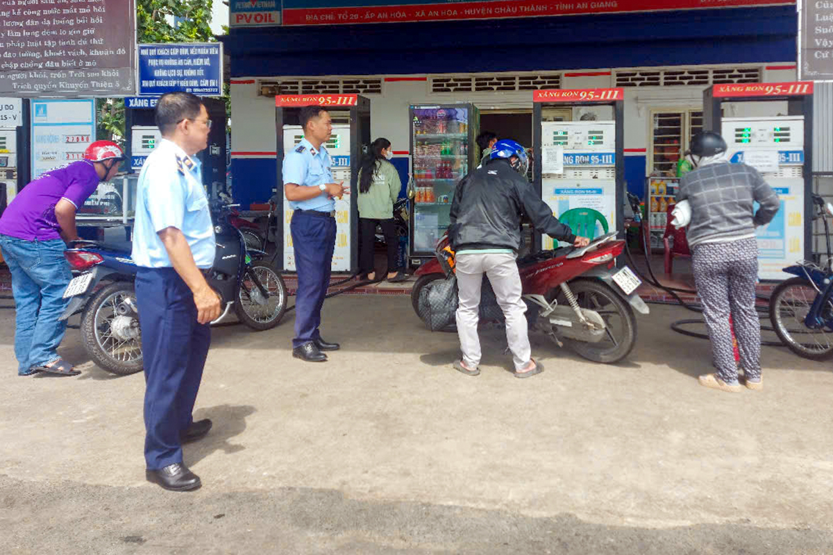 Tương tự tại An Giang, các Đội QLTT cũng đã đẩy mạnh kiểm tra, kiểm soát đối với các doanh nghiệp và cửa hàng bán lẻ xăng dầu trên địa bàn. Theo đó, kịp thời ngăn chặn và xử lý nghiêm theo quy định của pháp luật, đặc biệt là các hành vi găm hàng, tạo khan hiếm nguồn cung, tự ý tăng giá, bán hàng không đúng giá niêm yết, kinh doanh xăng dầu nhập lậu, không rõ nguồn gốc, xuất xứ hoặc không đảm bảo chất lượng.