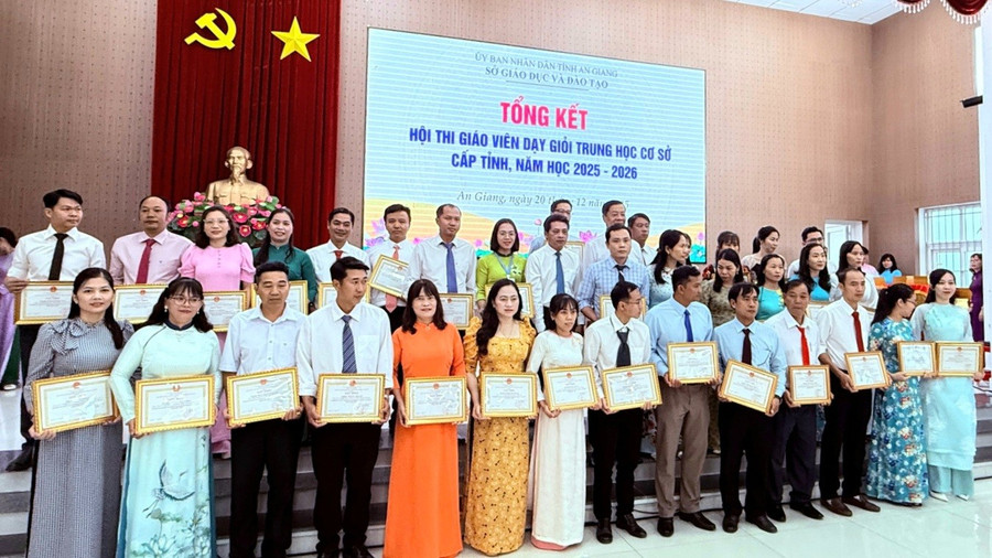 Kết quả, có 916 giáo viên đạt danh hiệu Giáo viên dạy giỏi THCS cấp tỉnh năm học 2025 – 2026. Dịp này, Sở GD&ĐT tỉnh An Giang trao tặng Giấy khen 340 giáo viên đạt thành tích xuất sắc trong hội thi.