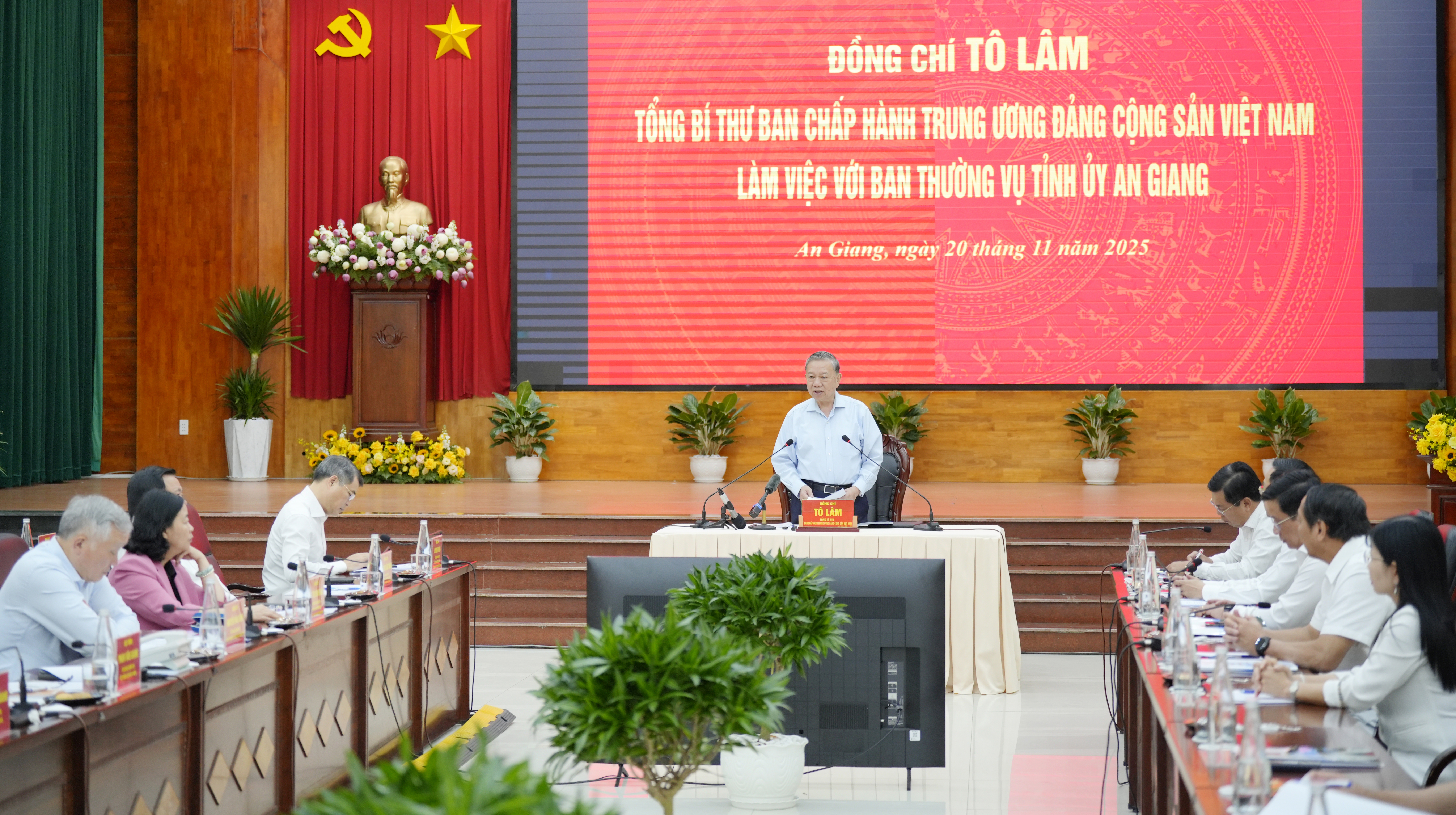 Tổng Bí thư Tô Lâm phát biểu tại buổi làm việc với tỉnh An Giang