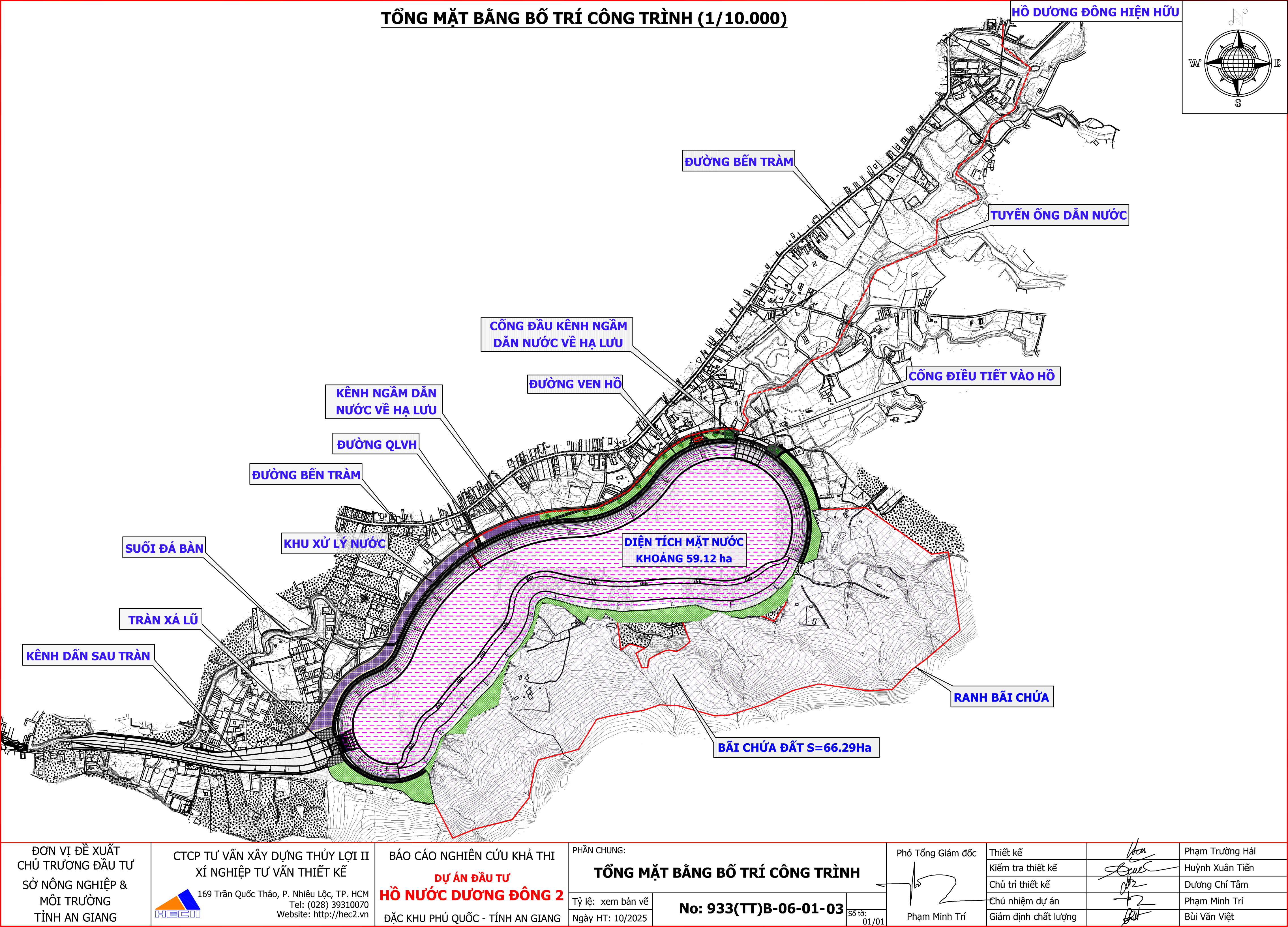 Tổng mặt bằng bố trí công trình dự án đầu tư Hồ nước Dương Đông 2