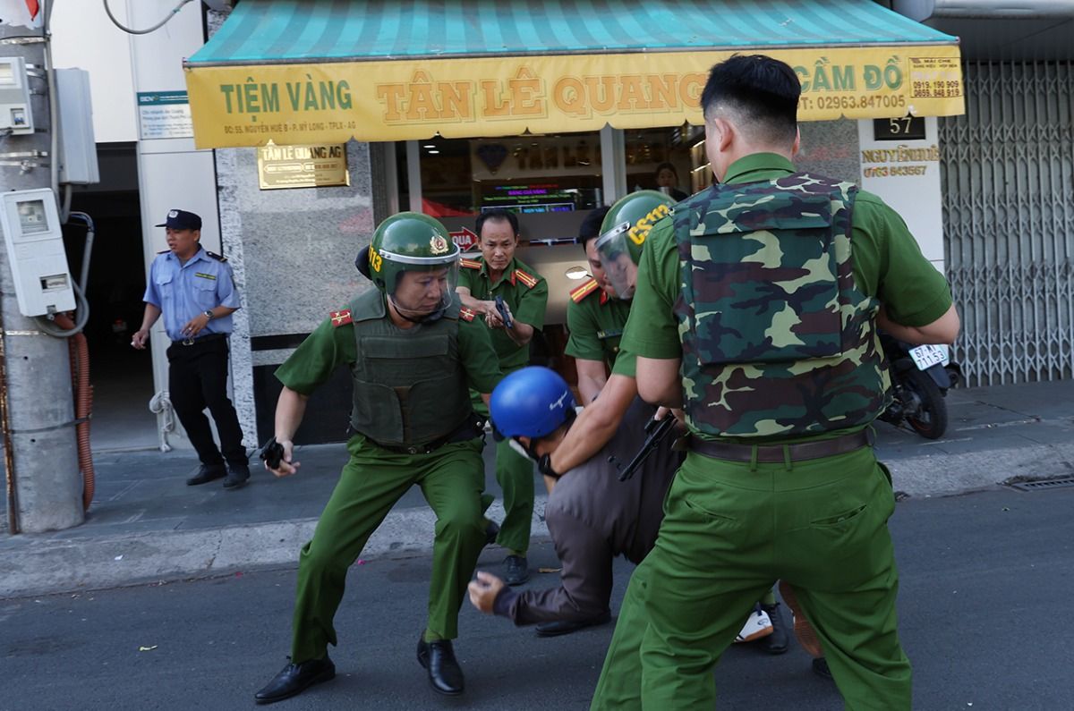 Sau khi khống chế bảo vệ, uy hiếp người dân đang giao dịch và nhân viên ngân hàng, các đối tượng đã lấy tiền bỏ chạy ra ngoài tìm cách tẩu thoát. Bằng các biện pháp nghiệp vụ, lực lượng Công an phường đã nhanh chóng khống chế, bắt giữ thành công hai đối tượng.