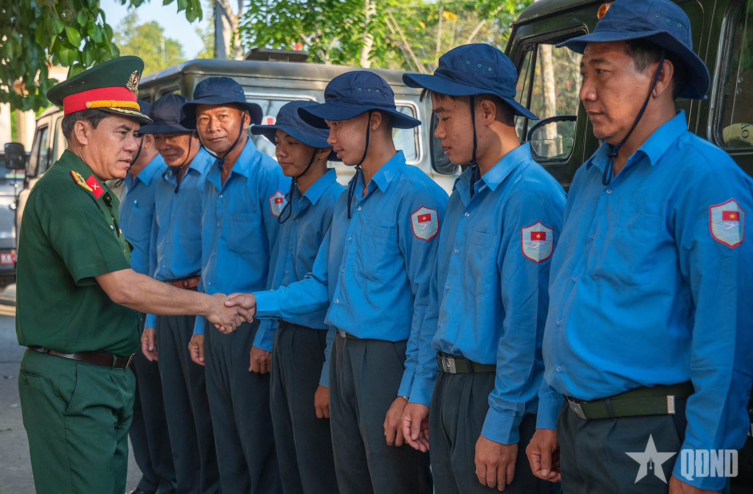 Những cái bắt tay chân thành tiếp thêm động lực động viên cán bộ, chiến sĩ Đội K93 hoàn thành xuất sắc nhiệm vụ tìm kiếm quy tập hài cốt liệt sĩ giai đoạn mới.