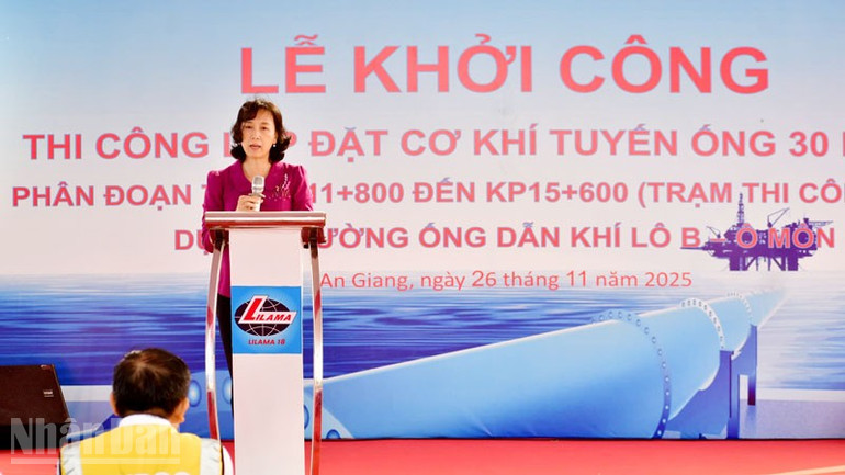 Phát biểu tại buổi lễ, Phó Chủ tịch Ủy ban nhân dân tỉnh An Giang Nguyễn Thị Minh Thúy ghi nhận tinh thần chủ động, trách nhiệm của chủ đầu tư là Công ty Điều hành Đường ống Tây Nam, cùng các địa phương, nhà thầu và đơn vị tư vấn, giám sát trong quá trình triển khai hồ sơ, giải phóng mặt bằng và chuẩn bị điều kiện thi công.