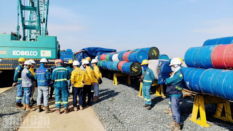 Các kỹ sư, cán bộ kỹ thuật và công nhân nhà thầu tập trung tại hiện trường để triển khai kế hoạch thi công.