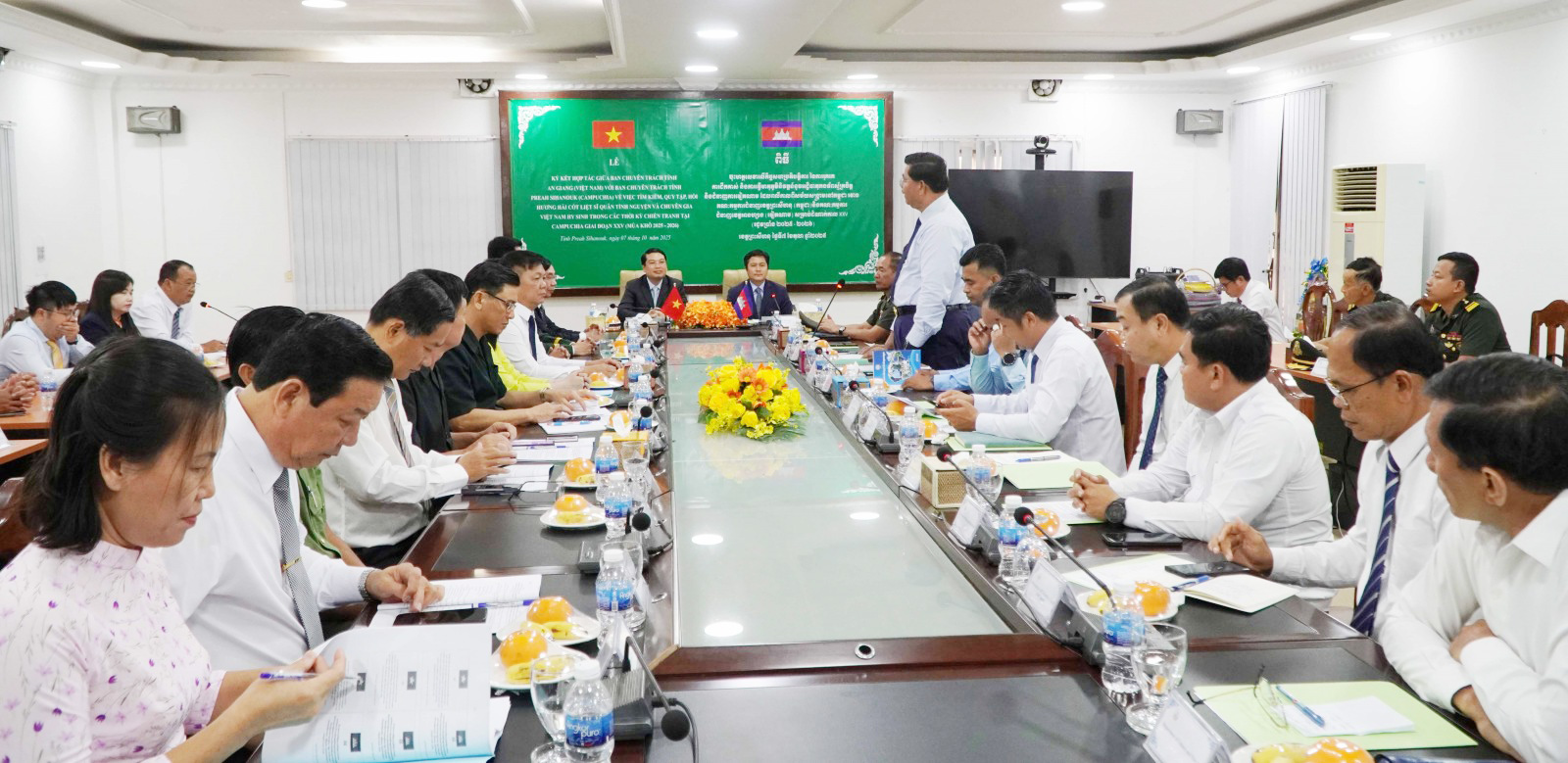 Phó Chủ tịch UBND tỉnh, Trưởng Ban Chuyên trách tỉnh An Giang Lê Trung Hồ và ngài Sok Phea, Phó Tỉnh trưởng, Trưởng Ban Chuyên trách tỉnh Preah Sihanouk đồng chủ trì lễ ký kết. Tổng Lãnh sự Việt Nam tại tỉnh Preah Sihanouk Lại Xuân Chiến dự lễ ký kết.
