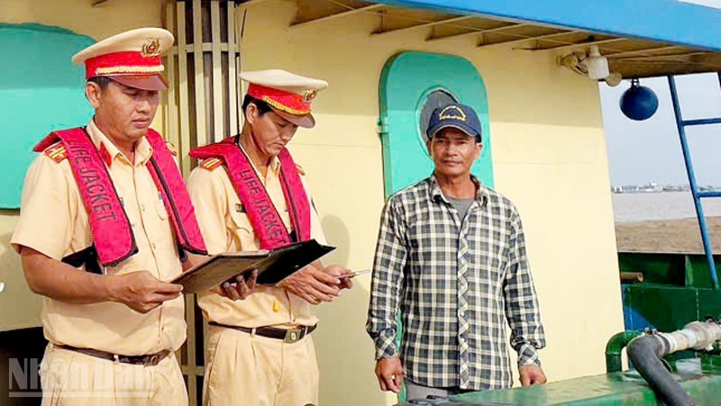 Lực lượng Cảnh sát giao thông kiểm tra phương tiện kinh doanh vận tải trên sông.