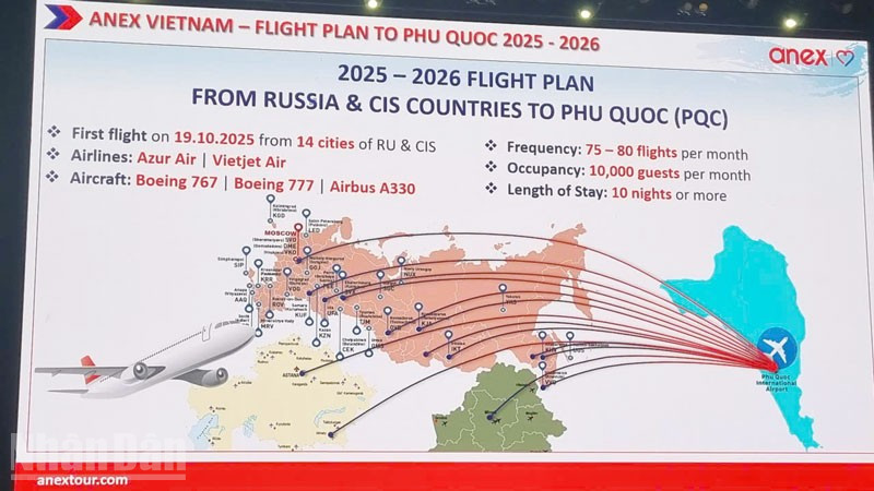 Theo kế hoạch, Công ty Trách nhiệm hữu hạn Thương mại và Du lịch Anex Việt Nam sẽ khai thác các chuyến bay charter từ Nga và các quốc gia thuộc khối CIS đến Đặc khu Phú Quốc vào mùa đông 2025-2026 với 60 nghìn khách.