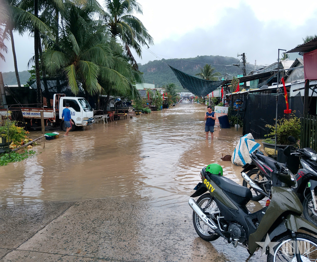 Do ảnh hưởng của bão số 12 và áp thấp nhiệt đới khiến nhiều khu vực trên địa bàn đặc khu Thổ Châu (An Giang) bị ngập sâu nghiêm trọng.