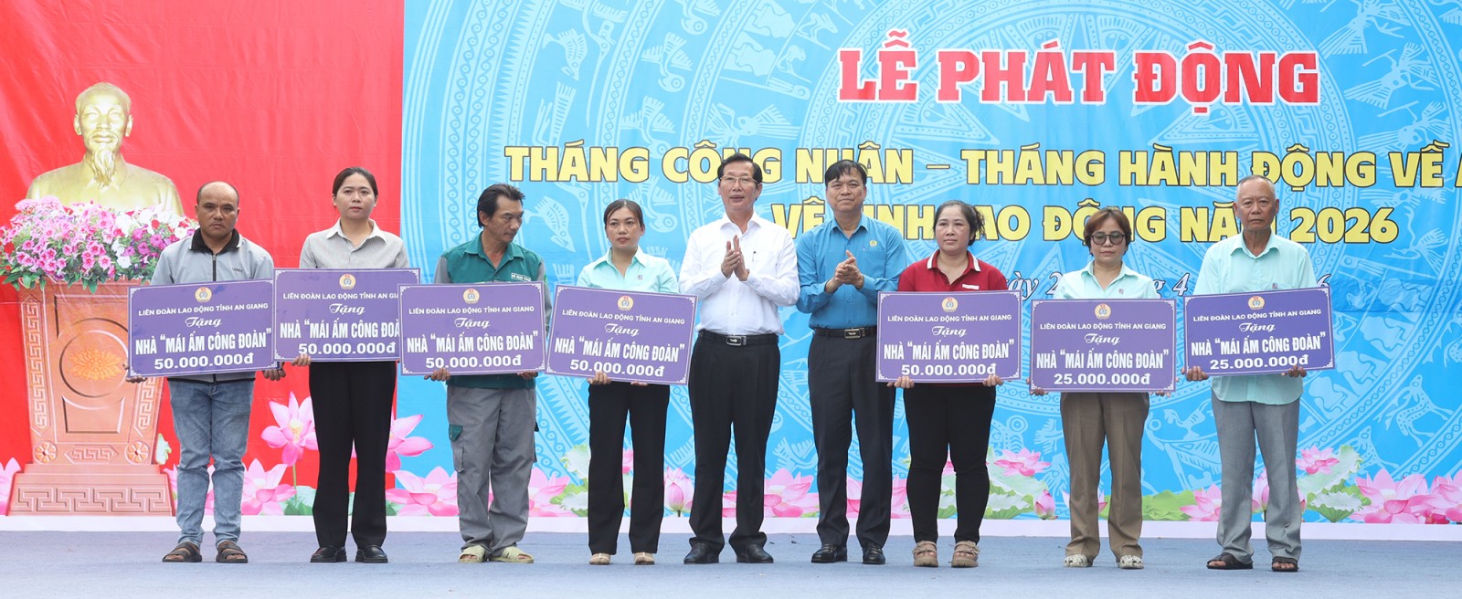 Tại lễ phát động, Liên đoàn Lao động tỉnh tặng 200 suất hỗ trợ (mỗi suất trị giá 500.000 đồng) cho đoàn viên, người lao động có hoàn cảnh khó khăn; trao hỗ trợ cho 7 đoàn viên công đoàn xây dựng và sửa chữa nhà “Mái ấm Công đoàn”, với tổng kinh phí 300 triệu đồng.