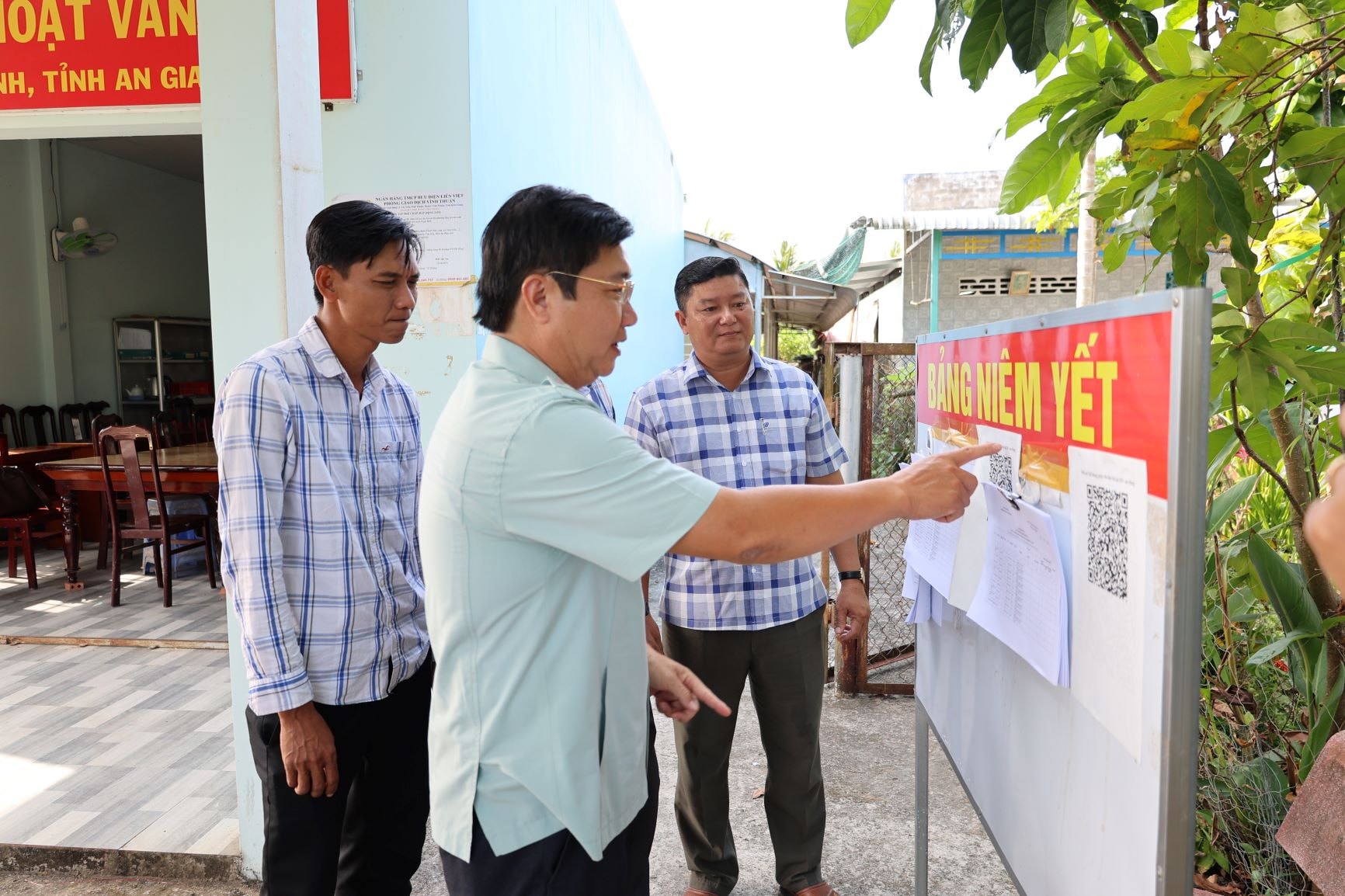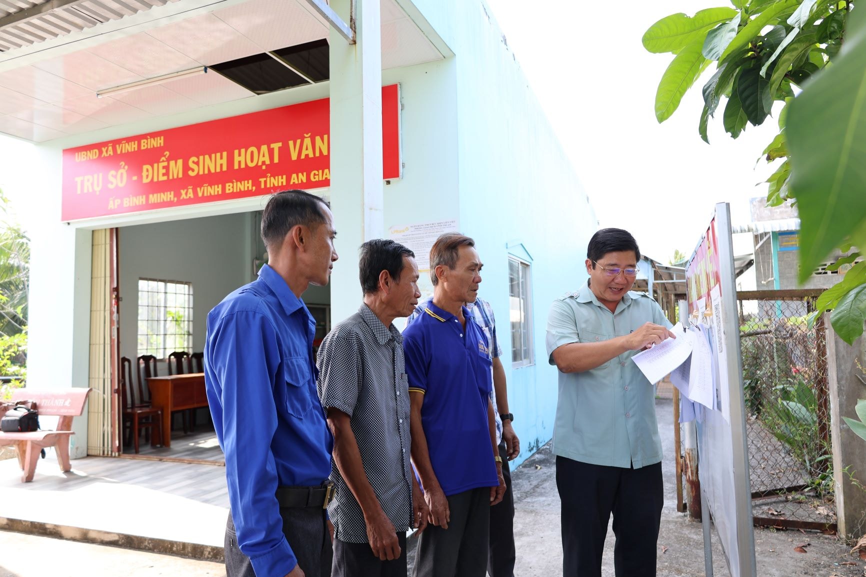 Phó Bí thư Thường trực, Chủ tịch HĐND xã Vĩnh Bình Võ Thanh Xuân kiểm tra công tác chuẩn bị bầu cử tại trụ sở ấp Bình Minh