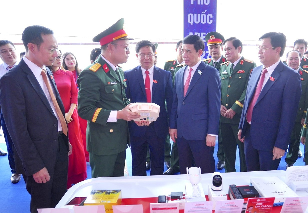 Đại tướng Phan Văn Giang tham quan các gian trưng bày bên lề đại hội.