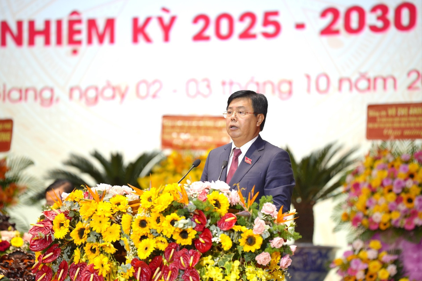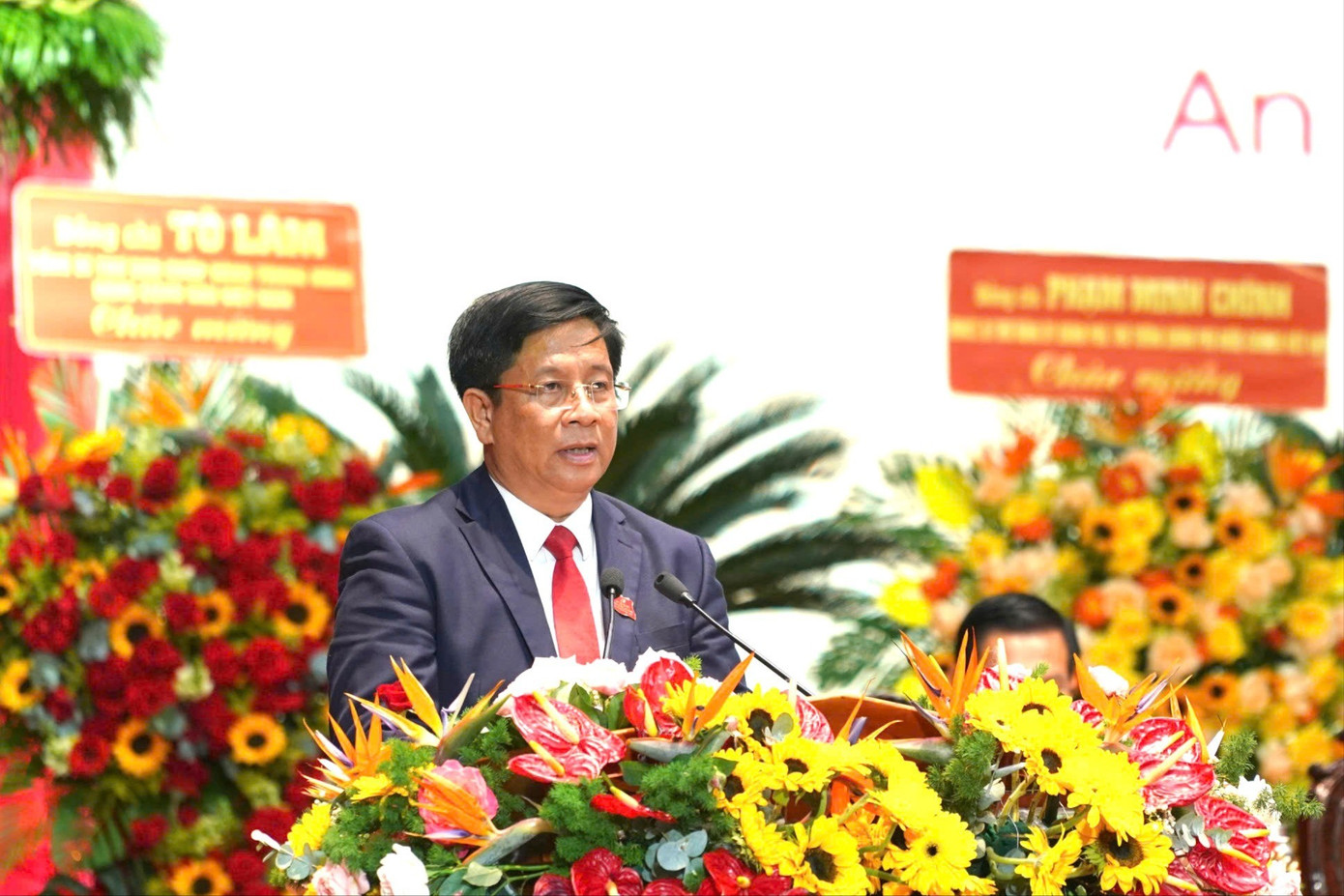Chủ tịch UBND tỉnh An Giang Hồ Văn Mừng trình bày báo cáo chính trị.