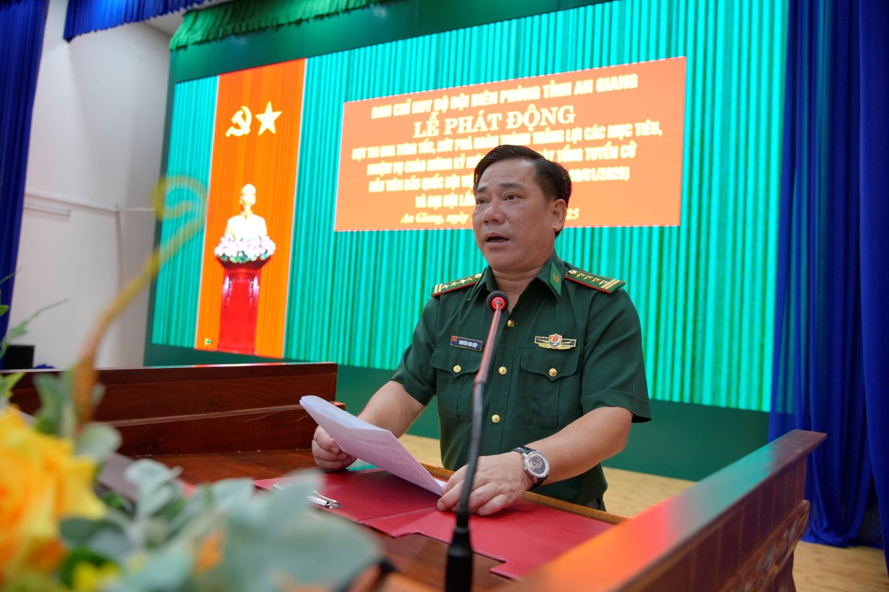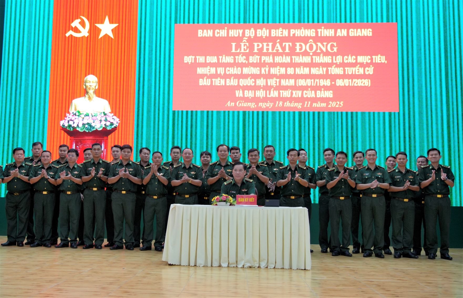 Ngày 25/11, Ban Chỉ huy Bộ đội Biên phòng tỉnh An Giang (Bộ Chỉ huy Quân sự tỉnh An Giang) tổ chức hội nghị phát động đợt thi đua: “Tăng tốc, bứt phá hoàn thành thắng lợi các mục tiêu, nhiệm vụ chào mừng kỷ niệm 80 năm Ngày Tổng tuyển cử đầu tiên bầu Quốc hội Việt Nam (06/01/1946 - 06/01/2026) và Đại hội lần thứ XIV của Đảng”. Đợt thi đua nhằm tạo ra động lực và quyết tâm mạnh mẽ của toàn thể cán bộ, chiến sĩ trong thực hiện nhiệm vụ.