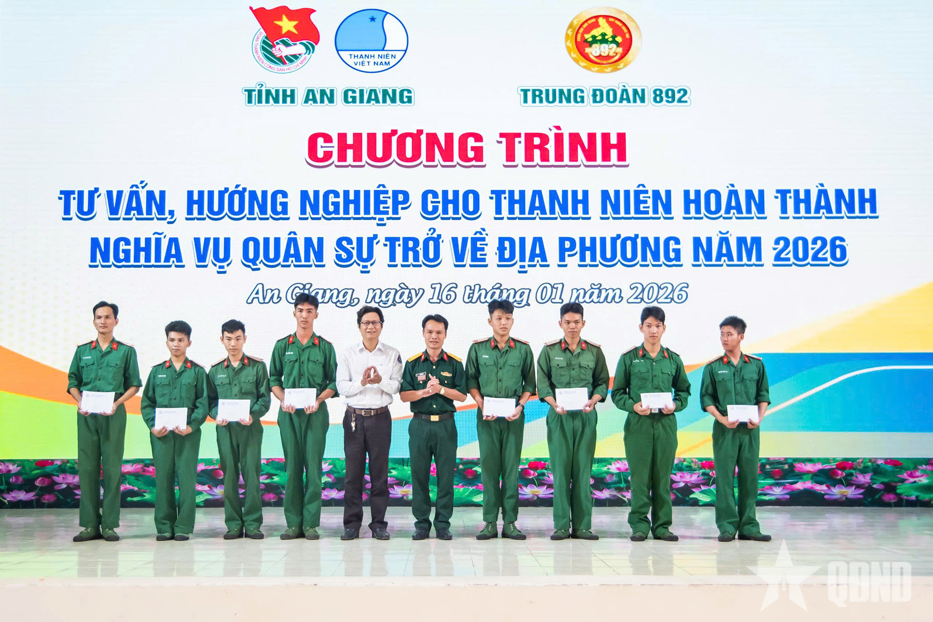 Trung đoàn 892 phối hợp Tỉnh đoàn An Giang và các công ty, Trung tâm giáo dục nghề... tư vấn việc làm, hướng nghiệp cho thanh niên.