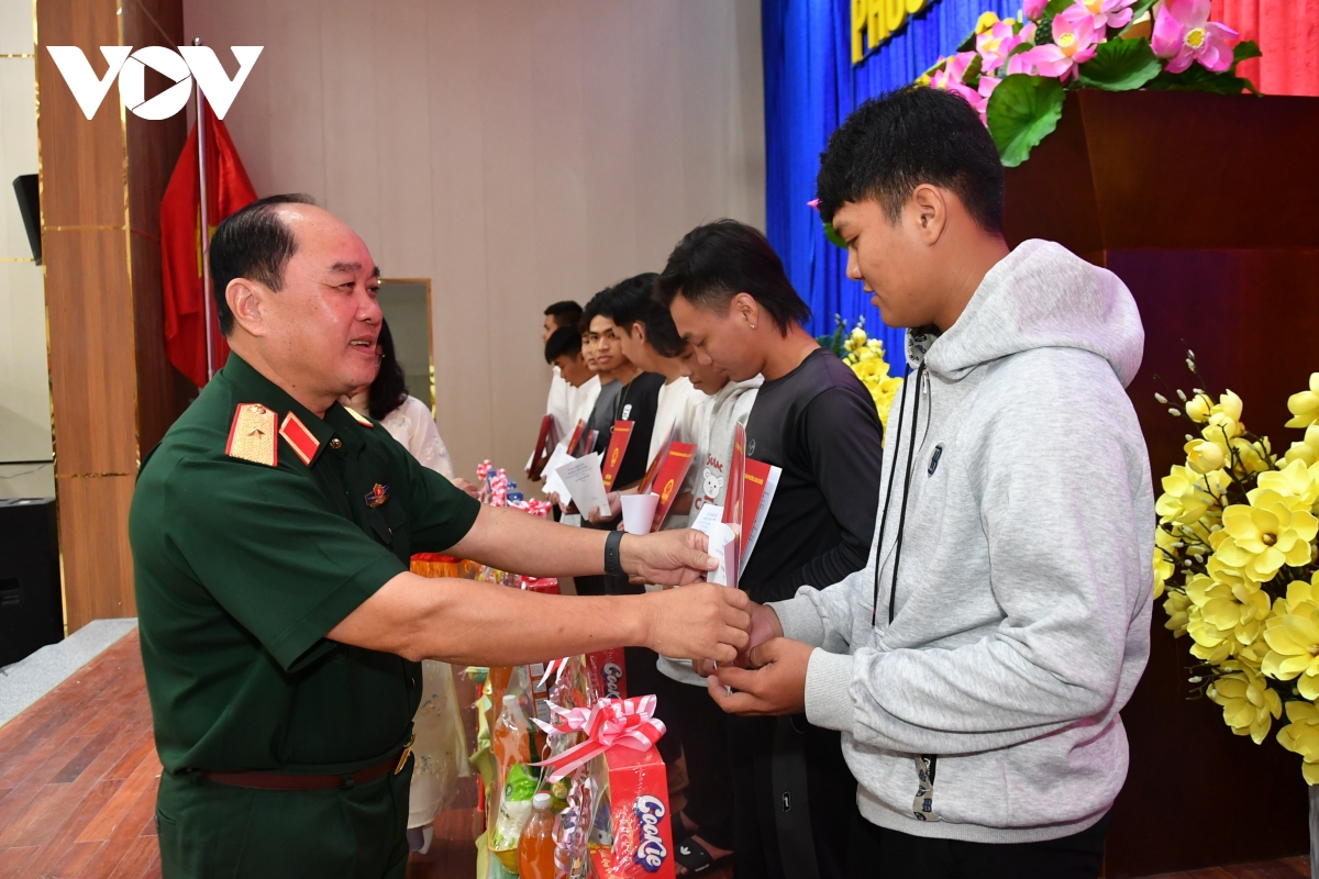 Thiếu tướng Nguyễn Văn Ngành, Ủy viên Ban Thường vụ Tỉnh ủy – Chỉ huy trưởng Bộ CHQS tỉnh trao quyết định gọi thanh niên nhập ngũ tại phường Long Xuyên.
