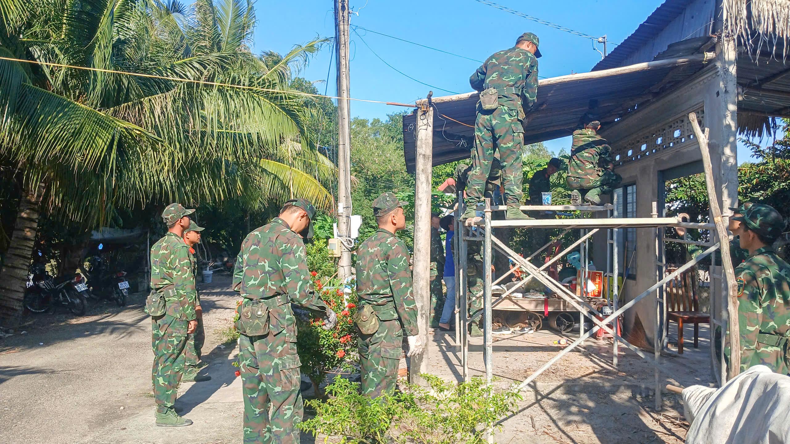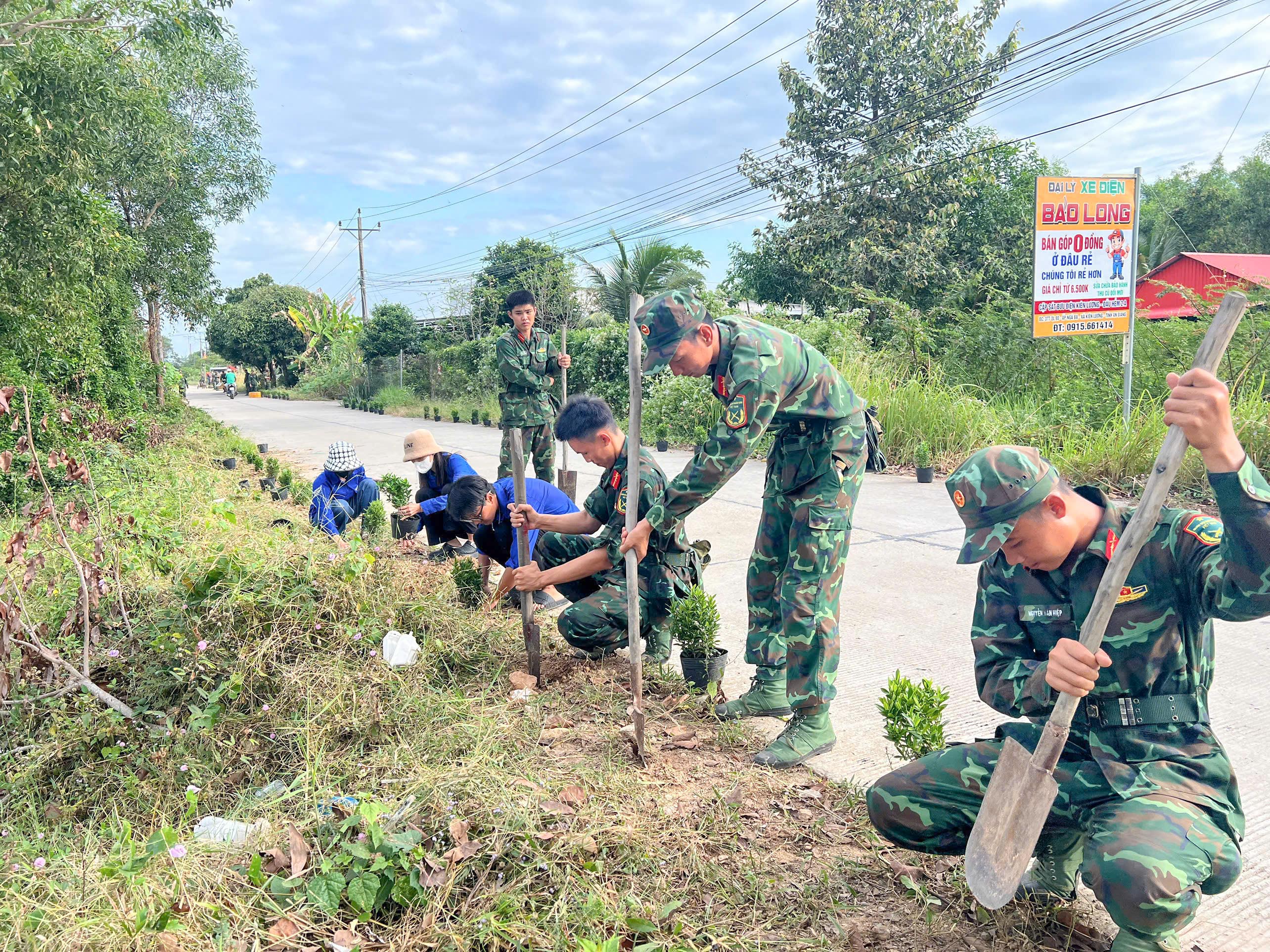 Trong thời gian hành quân, hơn 100 cán bộ, chiến sĩ Trung đoàn 893 đã cùng địa phương trồng hơn 3.500 cây hoa dọc 2 tuyến đường tại ấp Cống Tre và khu vực trạm thu phí, với tổng chiều dài khoảng 2.000 m, góp phần tạo cảnh quan xanh - sạch - đẹp cho địa phương.