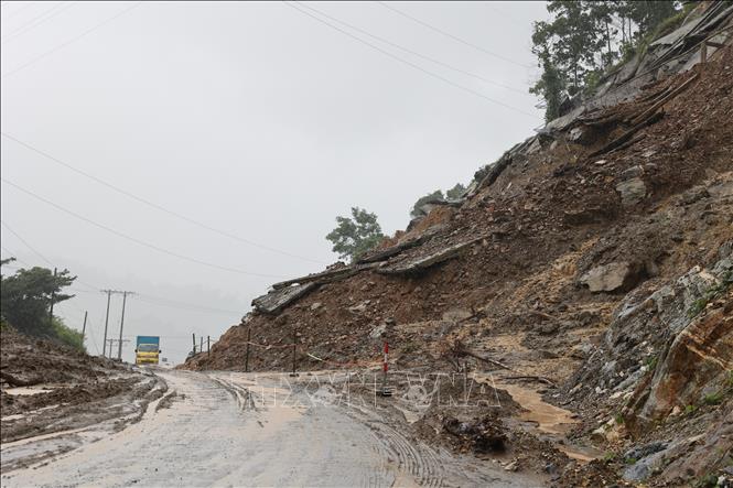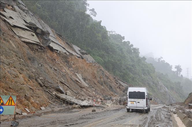 Theo quan sát của phóng viên TTXVN tại hiện trường vào ngày 24/10, taluy dương tại vị trí này đã bị sạt lở, mưa lớn nhiều ngày khiến các tấm bê tông gia cố mái taluy bị đứt gãy, xô lệch, đất, đá có nguy cơ rơi xuống bất cứ lúc nào, đe dọa trực tiếp đến tính mạng người đi đường. Mặt đường trơn trượt do bùn đất, nước chảy xiết xuống rãnh thoát nước, khiến việc đi lại của người dân vùng núi gặp vô vàn khó khăn, tiềm ẩn nguy cơ tai nạn. Trong khi đó, hai đầu vị trí sạt lở không bố trí người đứng cảnh báo mà chỉ đặt những biển báo tạm thời và căng dây tạm bợ.