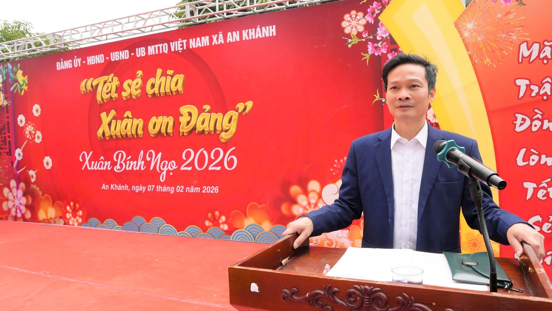 Phát biểu tại chương trình, Phó Chủ tịch Thường trực Ủy ban MTTQ Việt Nam xã, Chủ tịch Hội Nông dân xã An Khánh Nguyễn Đắc Hoàng cho biết, việc tổ chức chương trình “Tết sẻ chia - xuân ơn Đảng” để Tết thật sự ấm hơn, gần hơn với những người còn khó khăn, để mỗi mùa xuân đi qua đều để lại trong lòng người dân An Khánh một niềm tin bền chặt là: Luôn có Đảng ủy, HĐND, UBND, Ủy ban MTTQ Việt Nam xã An Khánh, các thôn, tổ dân phố và các cơ quan, đơn vị, doanh nghiệp, các nhà hảo tâm và nhân dân xã An Khánh luôn ở bên, đồng hành và những người có hoàn cảnh khó khăn không bao giờ bị bỏ lại phía sau.