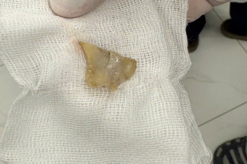 Mảnh xương được lấy ra khỏi bệnh nhi. Ảnh: BVCC