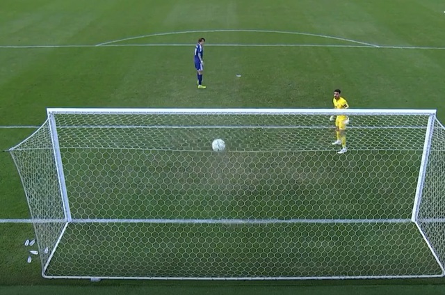 Thủ môn ngỡ ngàng khi thấy quả bóng đi vào lưới.
