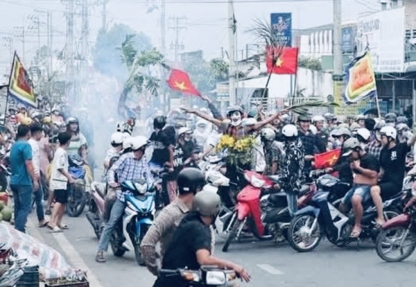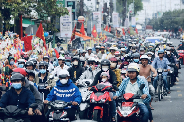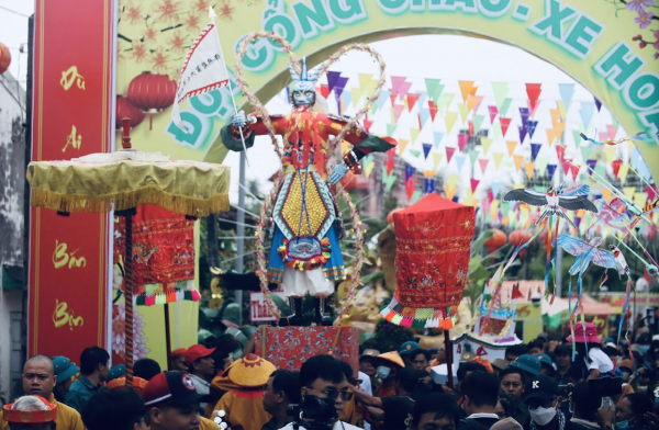 Hàng ngàn du khách từ các nơi đổ về huyện Châu Thành, tỉnh Long An tham gia lễ hội.