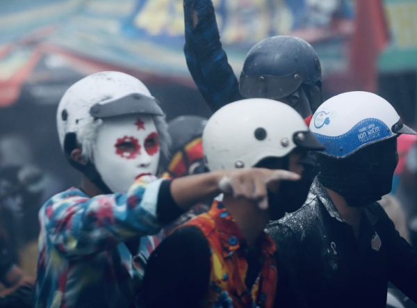 Hình ảnh hóa trang quái dị vẫn xuất hiện trong đoàn diễu hành.