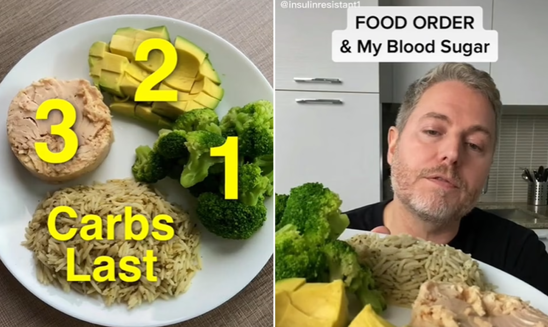 Chủ tài khoản TikTok @insulinresistant1 đã kiểm tra lượng đường huyết của mình sau khi ăn cùng một bữa ăn theo hai cách khác nhau để chứng minh thứ tự ăn uống có thể ảnh hưởng đến lượng đường trong máu như thế nào