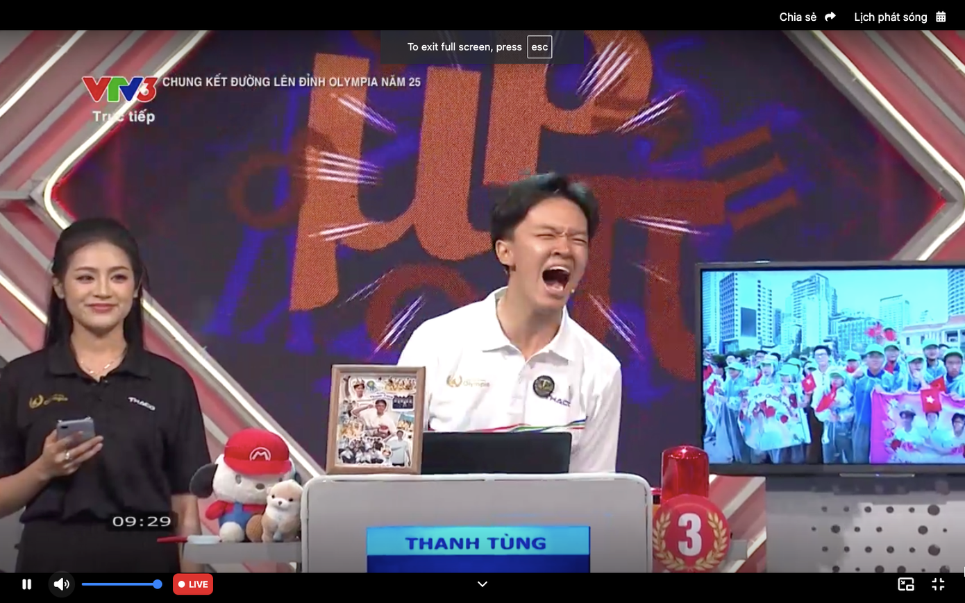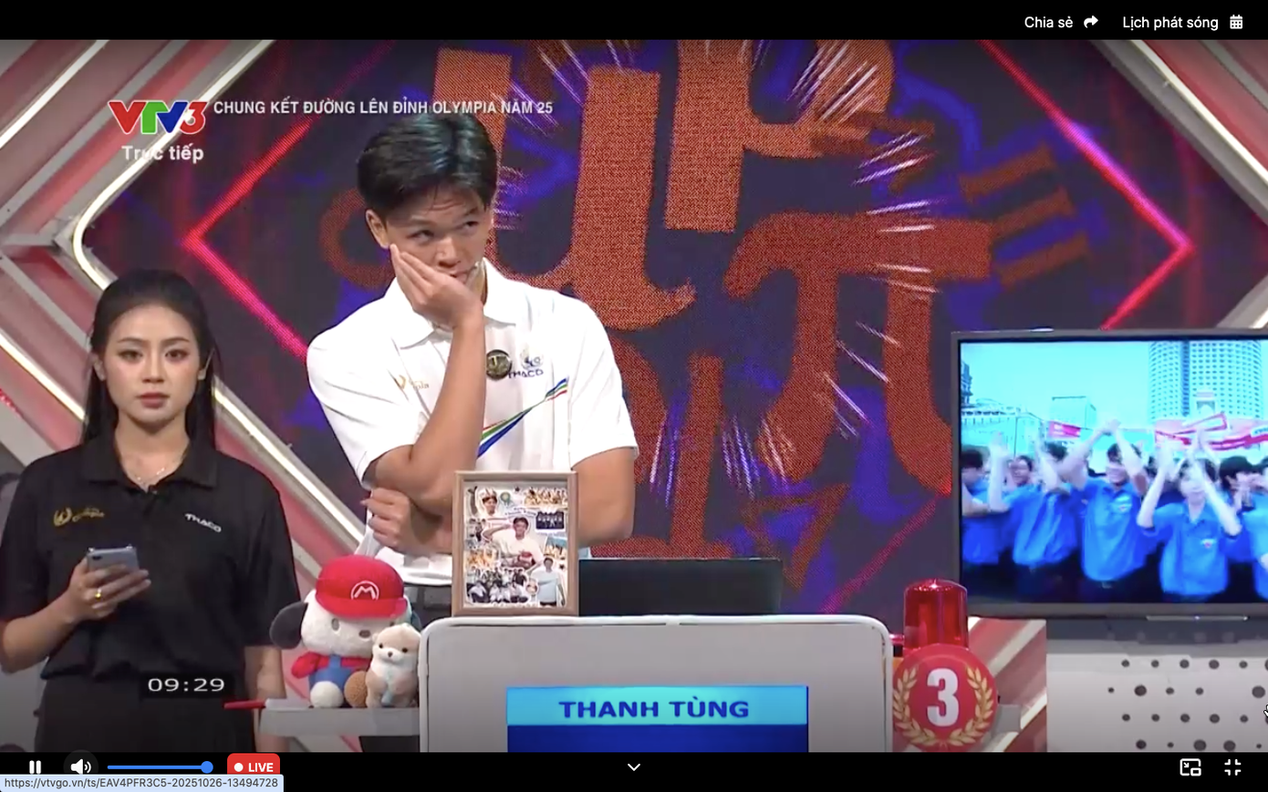 Sáng 26/10 diễn ra Chung kết năm Đường lên đỉnh Olympia năm thứ 25. Bốn gương mặt xuất sắc nhất tranh tài trong trận chung kết là: Lê Quang Duy Khoa (THPT chuyên Quốc Học - Huế, thành phố Huế), Nguyễn Nhựt Lam (THPT Cái Bè, tỉnh Đồng Tháp), Đoàn Thanh Tùng (THPT chuyên Lê Quý Đôn - Nam Nha Trang, tỉnh Khánh Hòa) và Trần Bùi Bảo Khánh (THPT chuyên Hà Nội – Amsterdam, thành phố Hà Nội).