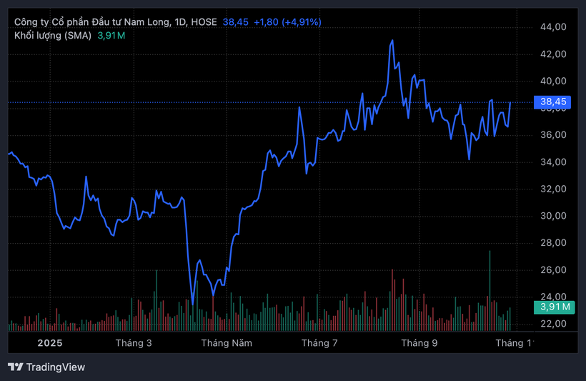 Không phải ngẫu nhiên khi ngày 29/10, cổ phiếu NLG tăng rất mạnh. Ngay từ đầu phiên sáng, mã này đã bứt phá và giữ vững đà tăng cho tới khi đóng cửa. Kết phiên, cổ phiếu NLG tăng 4,91%, đạt 38.450 đồng/cổ phiếu, mức giá cao nhất trong ngày. Khối lượng giao dịch vượt 3,9 triệu đơn vị, tương ứng giá trị khoảng 148 tỷ đồng, đưa vốn hóa Nam Long lên hơn 18.400 tỷ đồng.