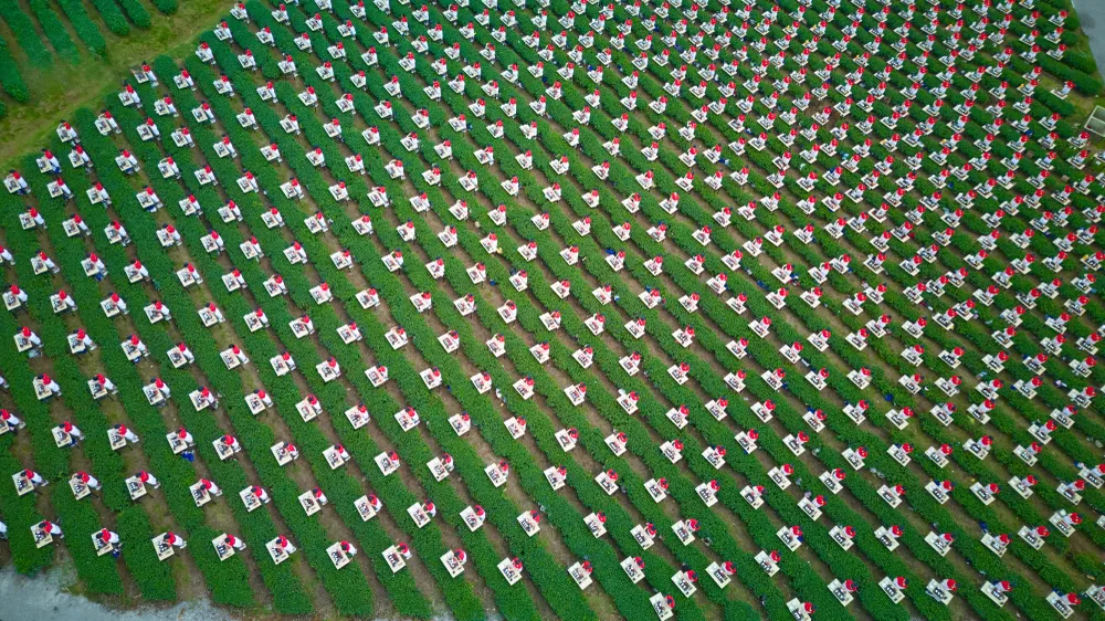 Khoảnh khắc hàng nghìn trà nương cùng chuyển động uyển chuyển đã tôn vinh sự thanh tao của nghi lễ trà Việt.