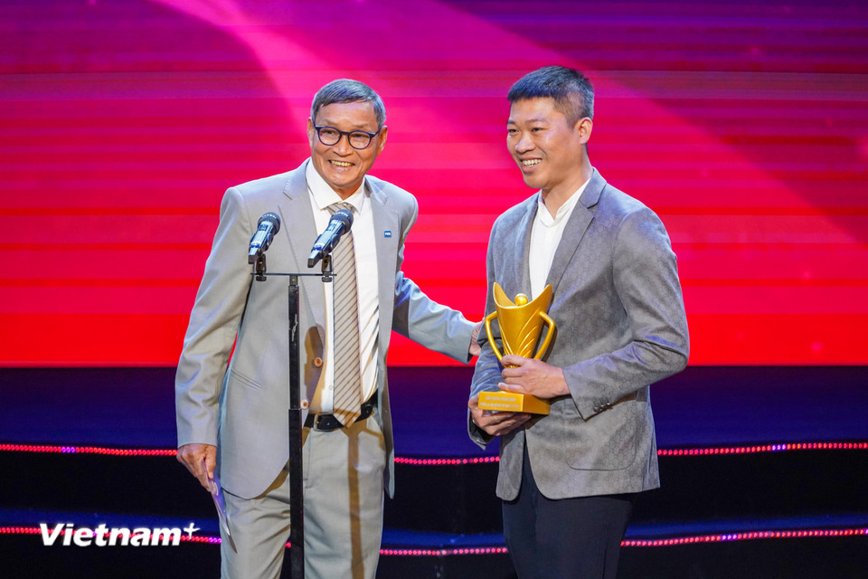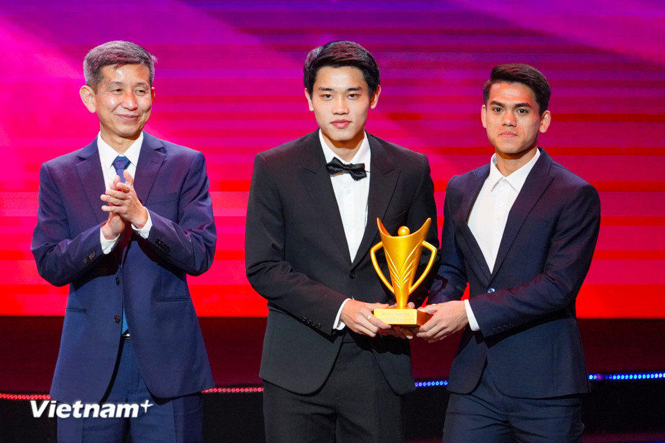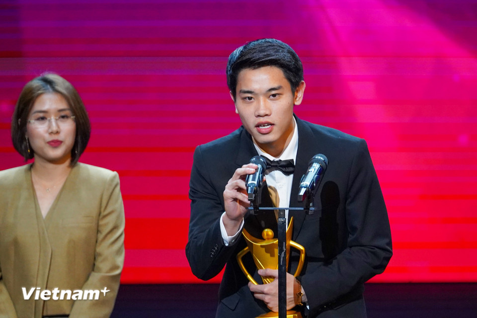 Tiền đạo Đình Bắc tiếp tục ghi dấu ấn với giải thưởng "Vận động viên trẻ của năm." (Ảnh: Việt Anh/Vietnam+)